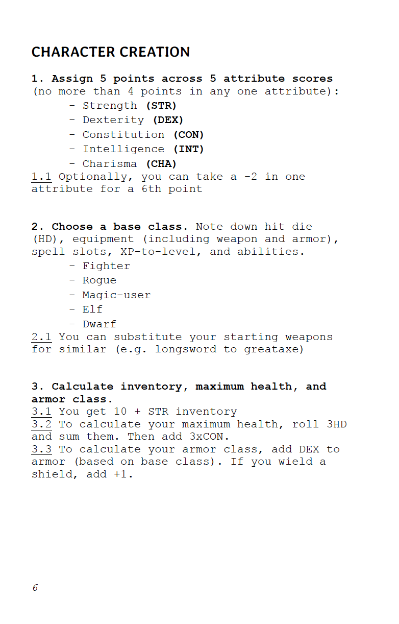 This is a game I made to play with my friends. It combines some of my favorite things about B/X, SEACAT, and 5e. Getting started with character creation is simple, but the characters are highly customizable and fairly good at surviving damage.